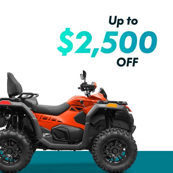 This offer is not transferable, not redeemable for cash or a gift card. Other conditions and restrictions may apply. The terms and conditions may vary depending on the province, and these offers are subject to termination or change at any time without notice. See your CFMOTO dealer for more details.