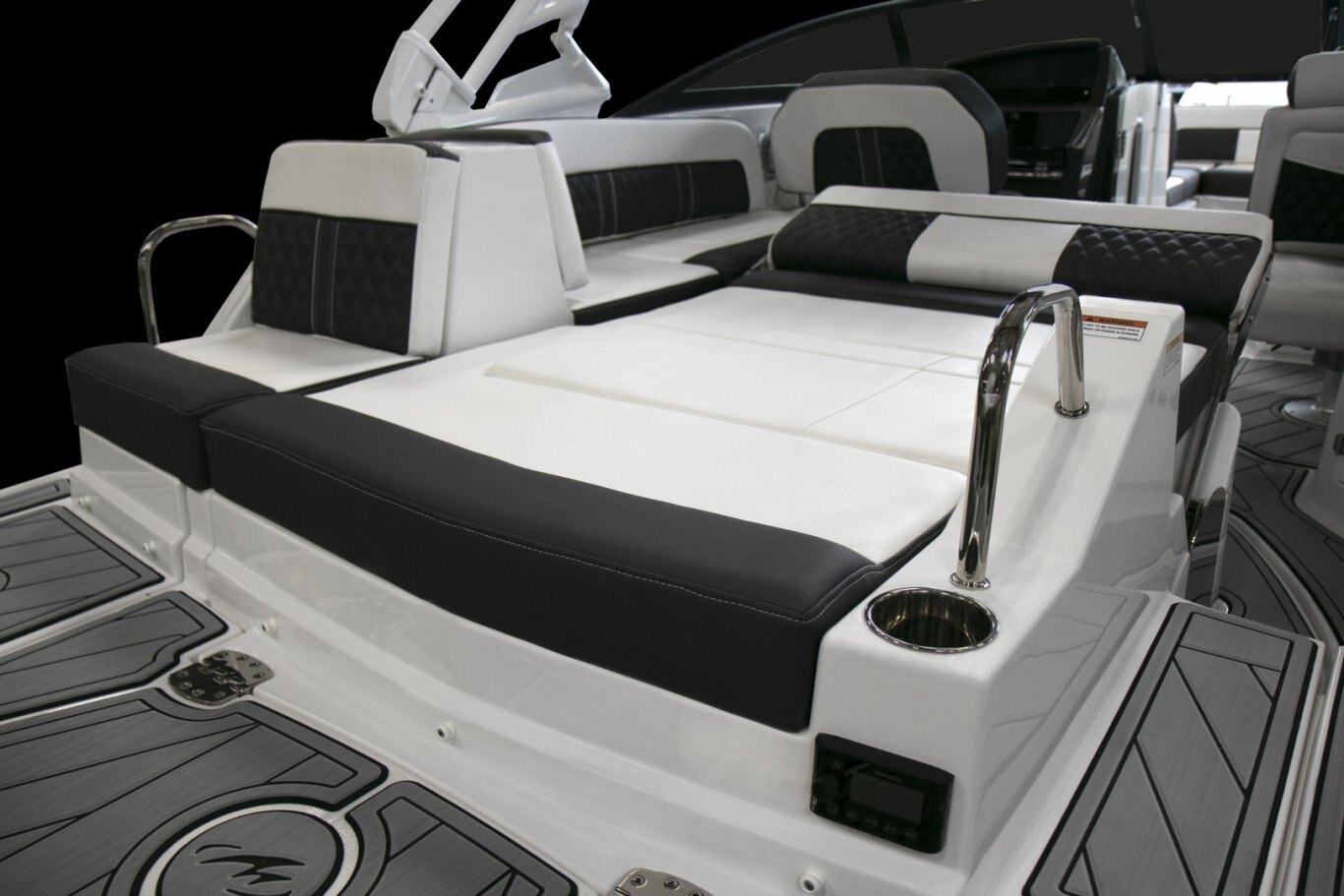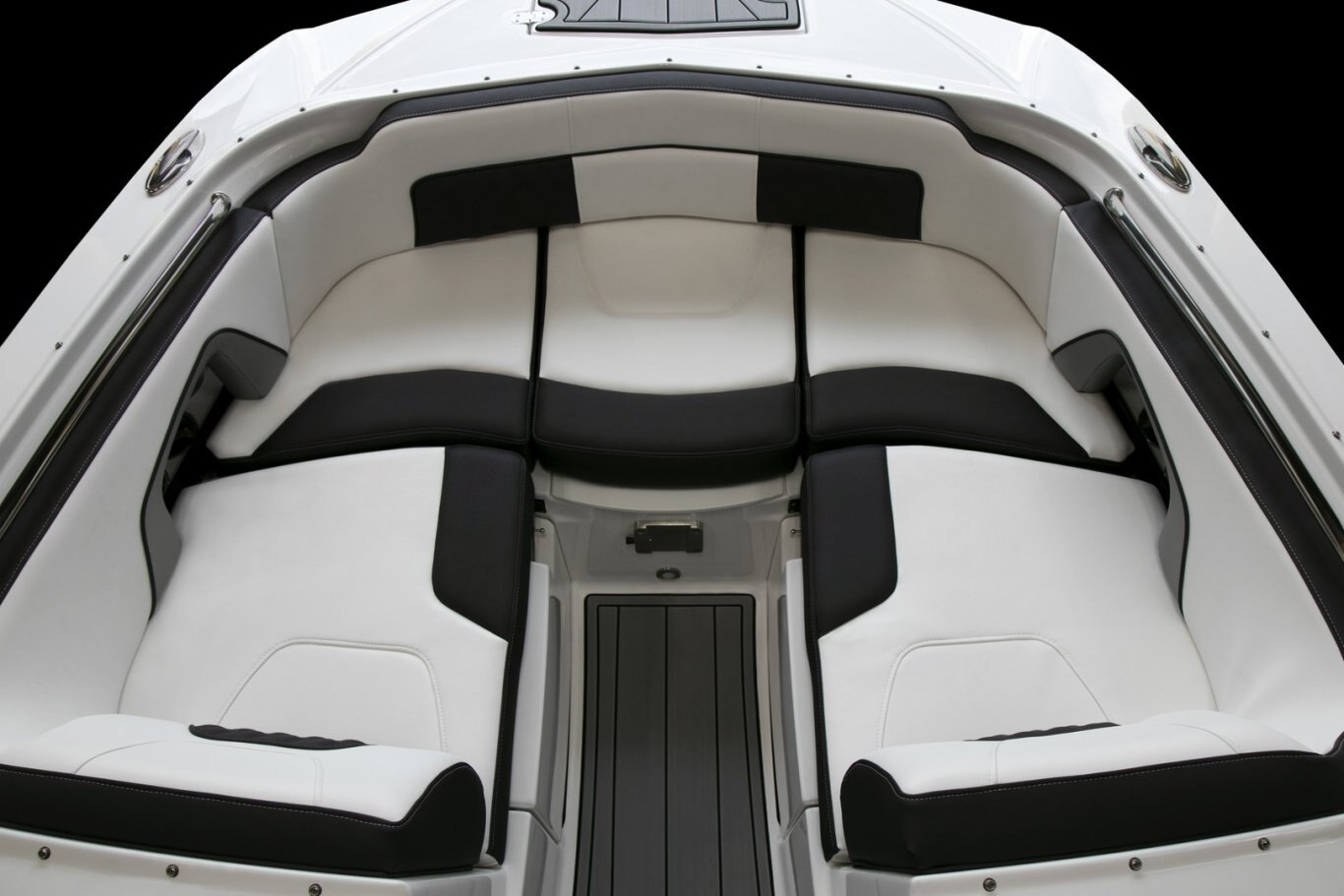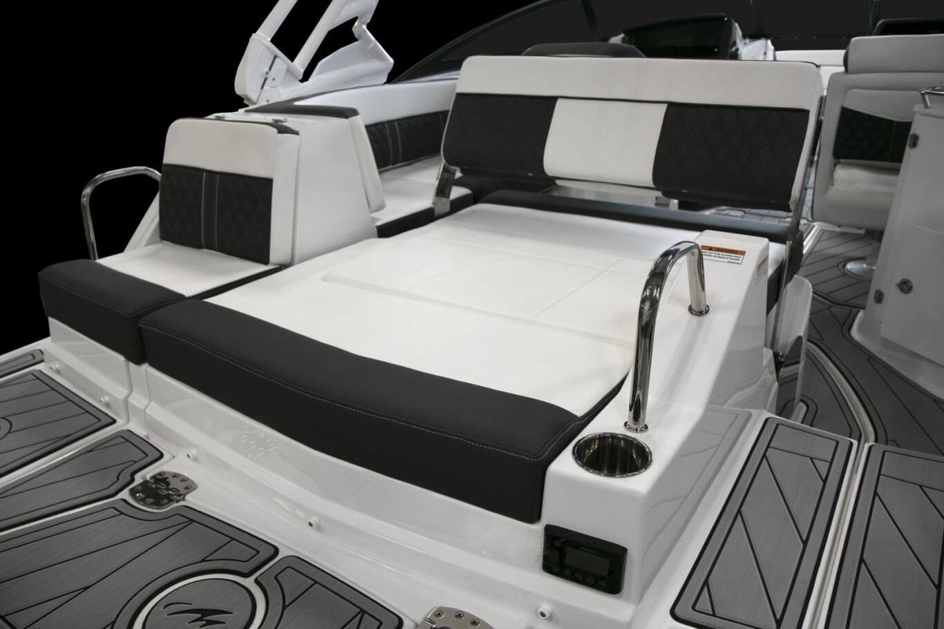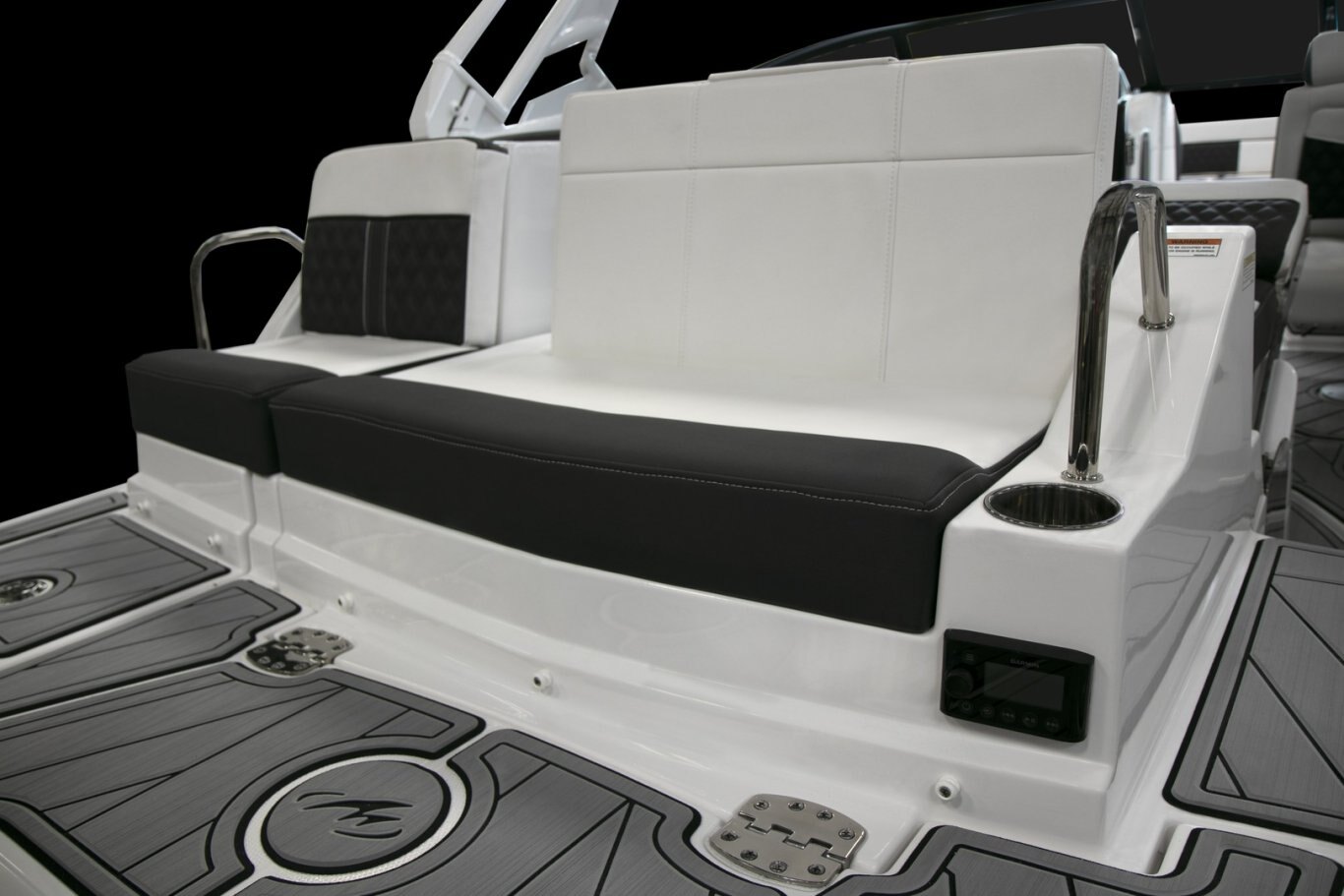 Nimble and Sporty best describes the Monterey M4. Featuring a standard wetbar sized just right for preparing a drink, or a quick snack, spacious seating, and generous dedicated storage areas, the M4 is ahead of the curve. Additional standard features include a stainless steel telescopic boarding ladder for easy access in an out of the water, a small head compartment which is located behind the port side dash, and a fusion satellite ready stereo.